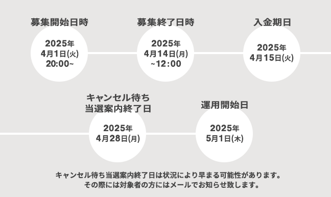 先着順のため、申し込みいただいた一部がキャンセル待ちになる可能性があります。